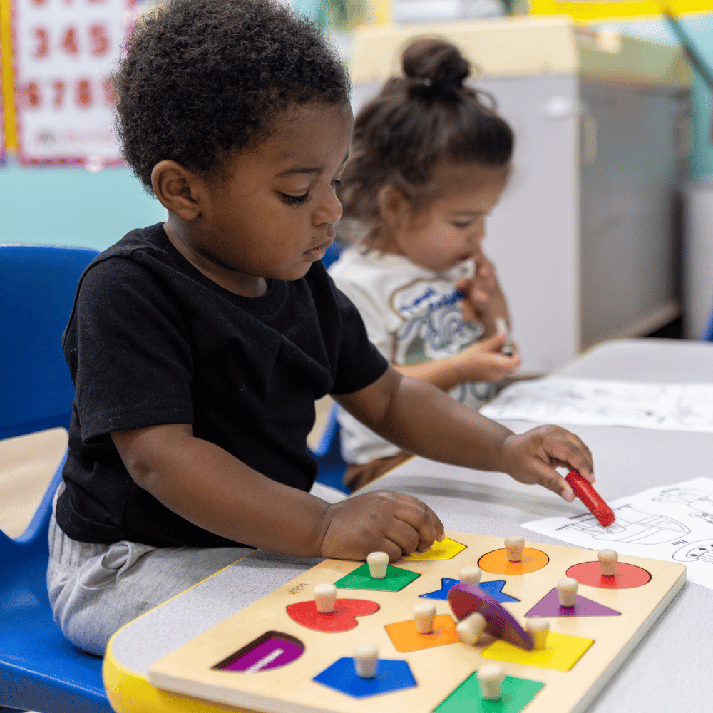 Our toddler programs follow a play-based, discovery-centered approach. Classrooms are designed to encourage free exploration and interaction with age-appropriate materials. Routines for meals and naps provide security, while social-emotional development remains a core focus. Children learn to express their needs, develop independence, and form positive relationships with peers and teachers.